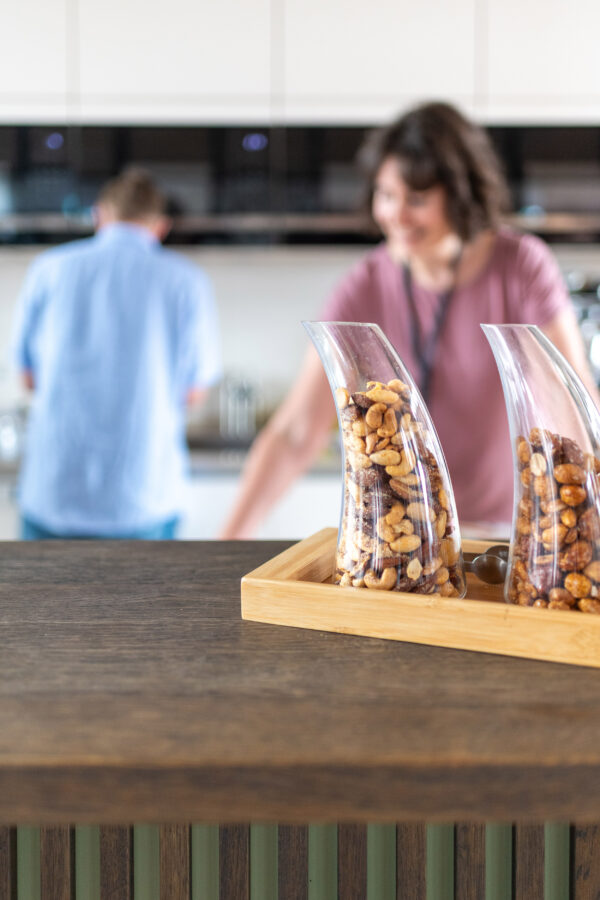 Mit der Rundum-Versorgung von Kaffee, Tee, Wasser, Saft, Obst und Snacks sorgen wir dafür, dass es Dir auch kulinarisch gut geht.
